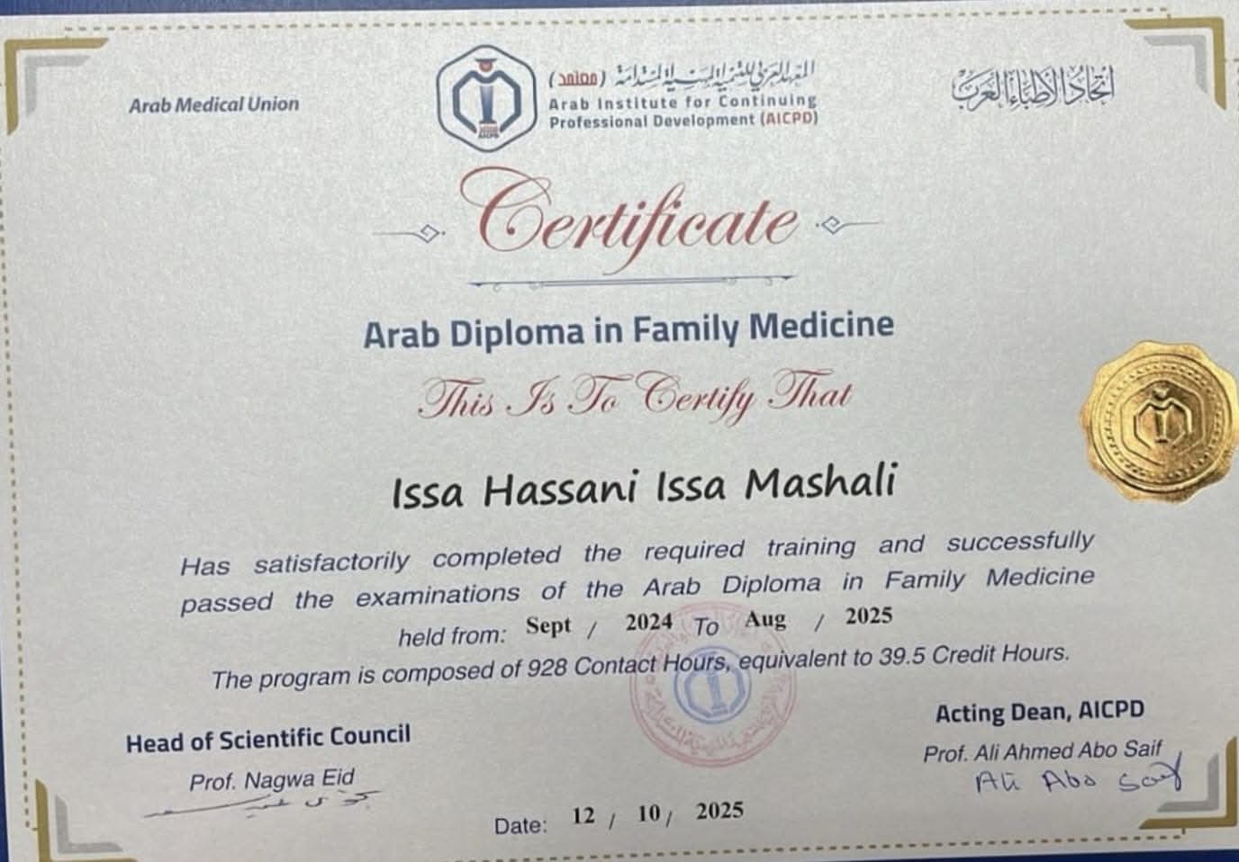 أسرة التحرير يهنؤن الدكتور عيسي حسانى لحصوله على دبلوم طب الأسرة